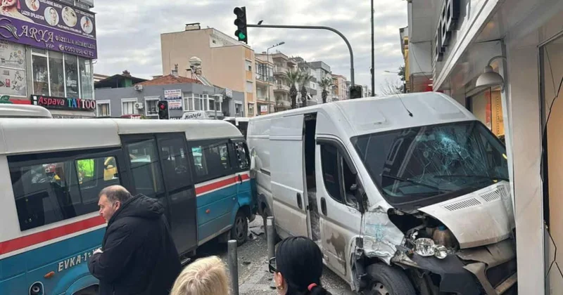 Freni boşalan minibüs, yolcu minibüsü ve yayaya ardından da mağaza duvarına çarptı; 2 yaralı İzmir Haberleri