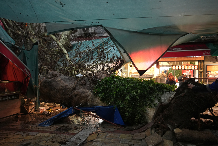 Konak ilçesinde bulunan Hisar Camisi önündeki anıt çınar ağacı henüz belirlenemeyen nedenle bazı iş yerlerinin üzerine devrildi.
