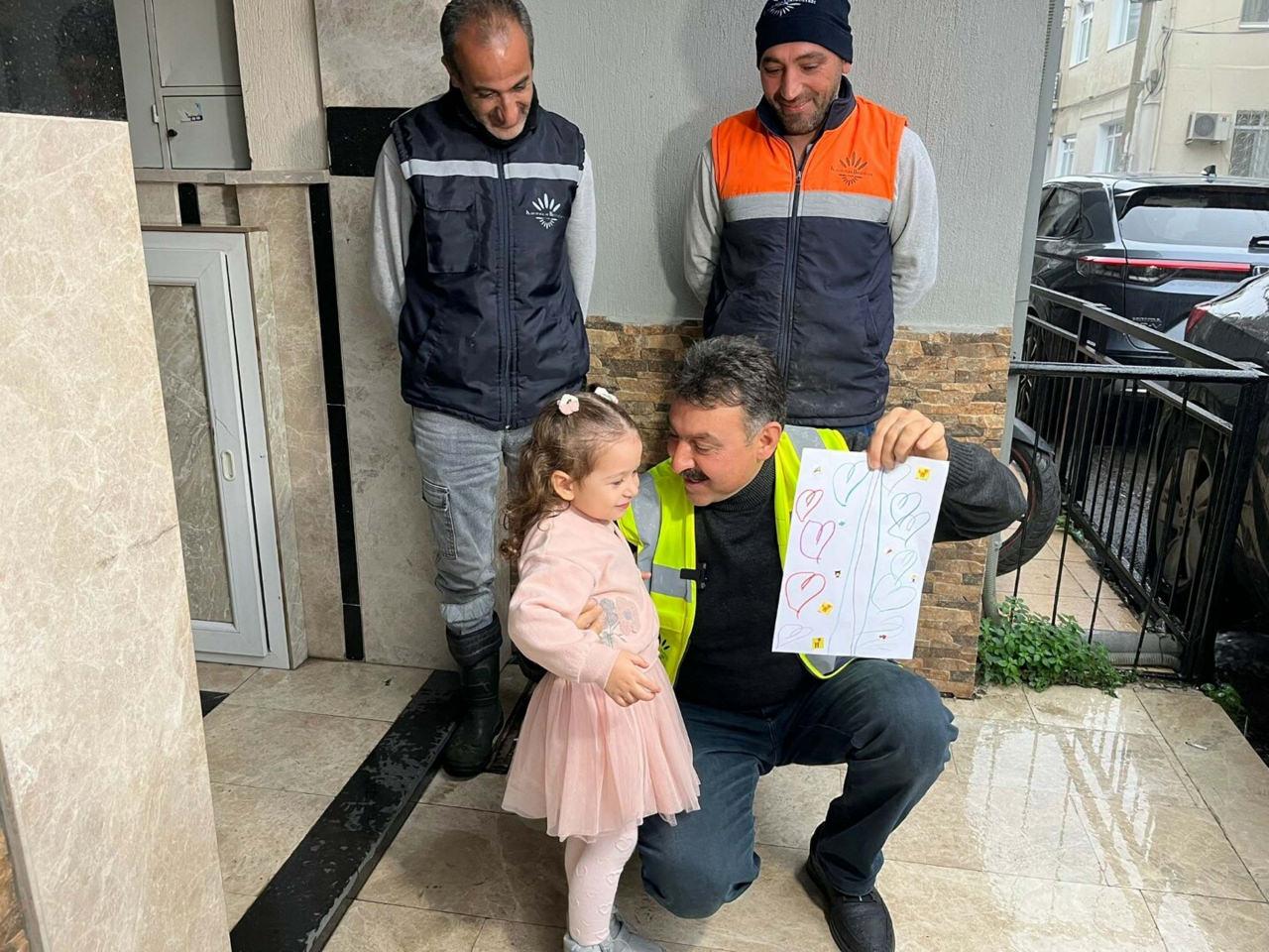 Minik Ayşe Nisa Akçay ise, "Şoför amca gelince ona el sallıyorum, kalp yapıyorum. Geldiğini duyunca anneme pencereyi açtırıyorum. O bana hediye çanta aldı. Ben de ona hediye aldım. Ona kalpli resim yaptım." dedi.