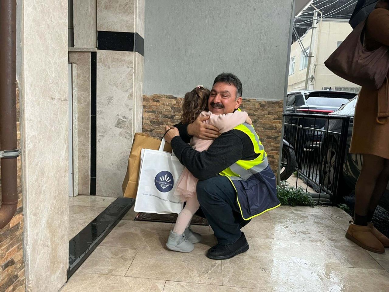 Evli ve 4 erkek çocuk babası olan Mahmut Yıldırım, "Bir kız çocuğu içimde hasret kalmıştı. Çöp kamyonu nerdeyse tüm mahalledeki çocukların ilgisini çekiyor. Çocuklar bizim hep dostumuz, yoldaşımız oldu. Her gün Yunusemre Mahallesi'nden de çöp alıyoruz. Minik kızımızla göz göze geldik ve sempatimiz öyle başladı. İlk el sallamayla başladı. Sonra bu kalp işaretine dönüştü. Artık her geldiğimde gözüm camdaydı. Onu gördüğümüz zaman mutlu çalışıyorduk. Gerçek samimiyet var. Çocuklarımızdan gelen bu sempati bizi motive ediyor. Ayşe Nisa'yı zaten bağrıma basmak istiyordum. Ailesi ile tanışana kadar çekimser kaldık. Tanışınca bir hediye almak istedim. Onlar da düşünüp, bana almışlar sağ olsunlar. Çocuklarımıza hediyeler az. Dünyayı da versek bu çocuklarımızın yerlerini doldurulamaz." diye konuştu.