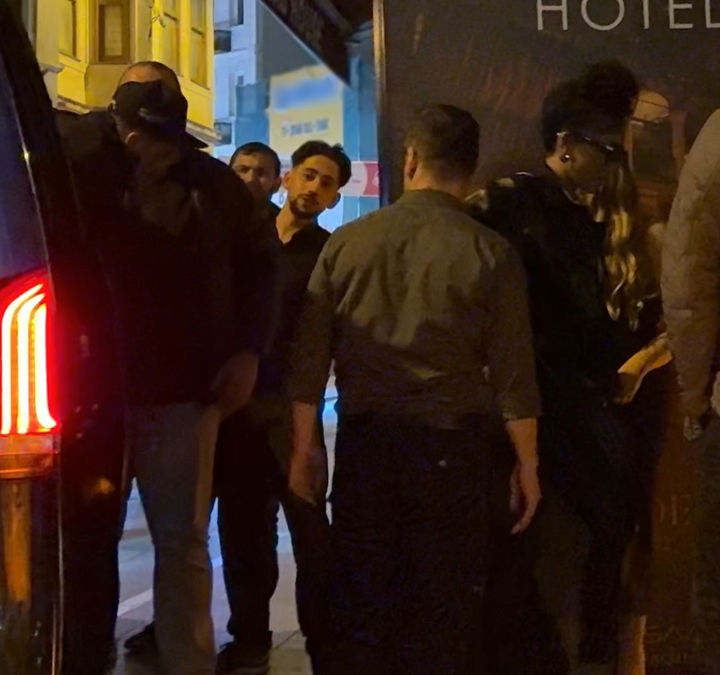 Âşıklar, daha sonra mekânın kapısındaki güvenlik görevlilerinin gazeteciler ile tartışması üzerine aracı kapıya sıfır yanaştırdı.