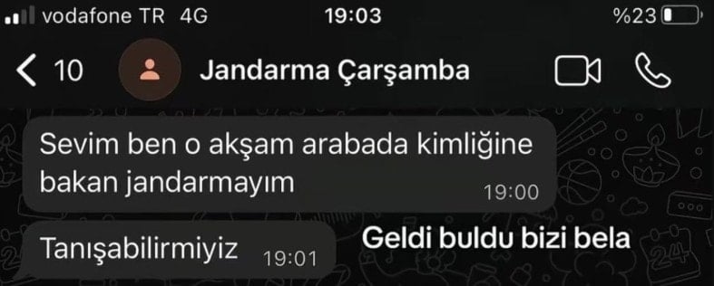 23 yaşındaki S.A. isimli genç bir kız, güvenlik kontrolünde kimliğine bakan Jandarma personelinin daha sonra kendisine WhatsApp'tan ulaşarak, "Tanışabilir miyiz?" diye mesajı attığına dair Tiktok hesabında görüntü paylaştı.