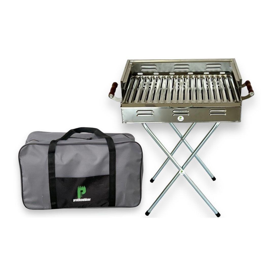 Gövde ve ızgarası tamamen 430 kalite paslanmaz çelikten üretilen ve büküm sertleştirme işlemiyle size uzun yıllar boyunca eşlik edecek Pratikoutdoor mangal, portatif katlanabilir ayak yapısı sayesinde aracınızın bagajında minimum yer kaplarken kurulum kolaylığı ile piknik ve kamp alanlarında size zaman kazandırır. Ahşap tutma saplarıyla ısı iletimini minimize ederek güvenli bir kullanım yaşatırken geniş ızgara yüzeyi sayesinde kalabalık sofralar için hızlı ve etkili çözümler üretmenize yardımcı olur.