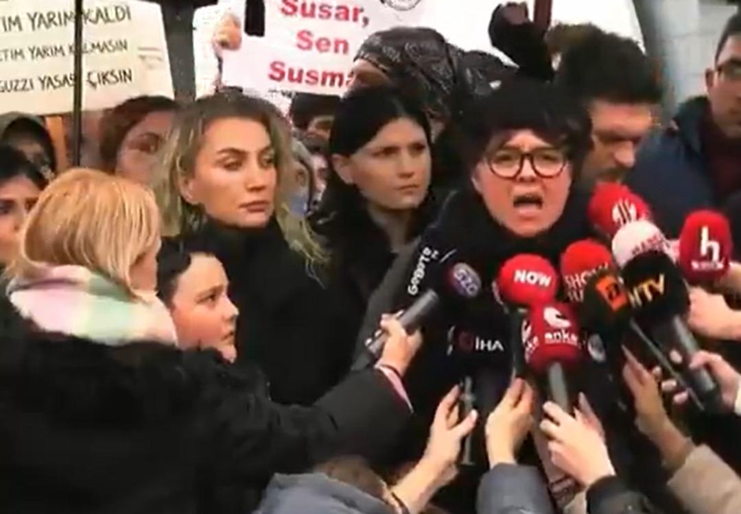 Burada bir konuşma gerçekleştiren Yasemin Minguzzi "Katillere çocuk diyenlere hakkımı helal etmiyorum. Yasa çıkmadı hakkımı helal etmiyorum" diyerek isyanını dile getirdi.