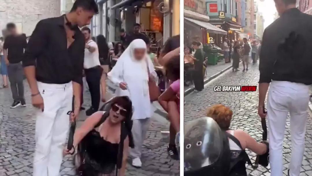 Türkiye, İstanbul Beyoğlu'nda çekilen görüntüleri konuşuyor. Caddede kalabalık içerisinde U.Y.(27), N.B.(57) isimli kadına tasma takarak gezdirdi.