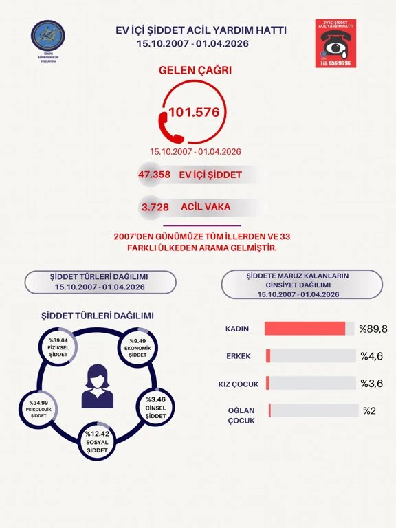Türkiye Kadın Dernekleri Federasyonu (TKDF), “Ev İçi Acil Yardım Hattı Mart 2026 Veri ve Analiz Raporu”nu yayımladı. Rapora göre Türkiye’de erkek şiddeti ciddi boyutlarda devam ediyor.