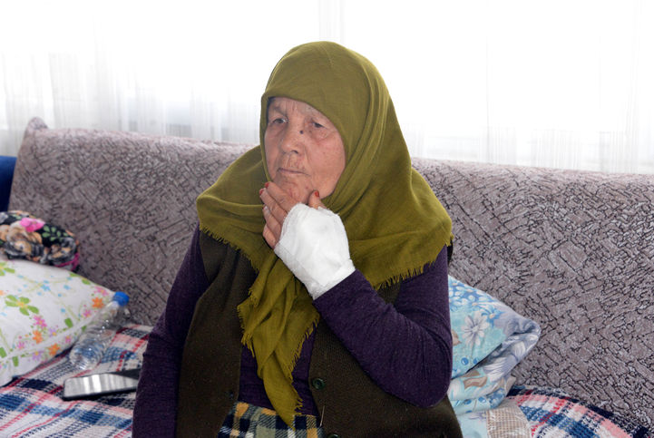 Kahramanmaraş’ta Ahmet Gözükara (42), evine gittiği komşusu Elife Akkök’ün (85) boğazına bıçağı dayayıp kolundaki bileziği gasp etti. Olay sırasında kendisine direnen Akkök’ü 2 elinden yaralayan Gözükara tutuklanırken, Elife Akkök şüphelinin en ağır şekilde cezalandırılmasını istedi.