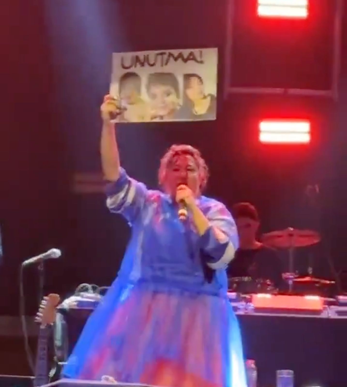 Konser sırasında seyircilerin hazırladığı ve üzerinde Ayşenur Halil, İkbal Uzuner ve Mattia Ahmet Minguzzi'nin fotoğraflarıyla birlikte "Unutma" ifadesinin yer aldığı pankartı fark eden Kalben, seyircilerin yanına giderek pankartı aldı.