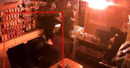 Kaldırım taşı ile iş yerinin camını kırıp, tablet ve cep telefonu çaldılar
