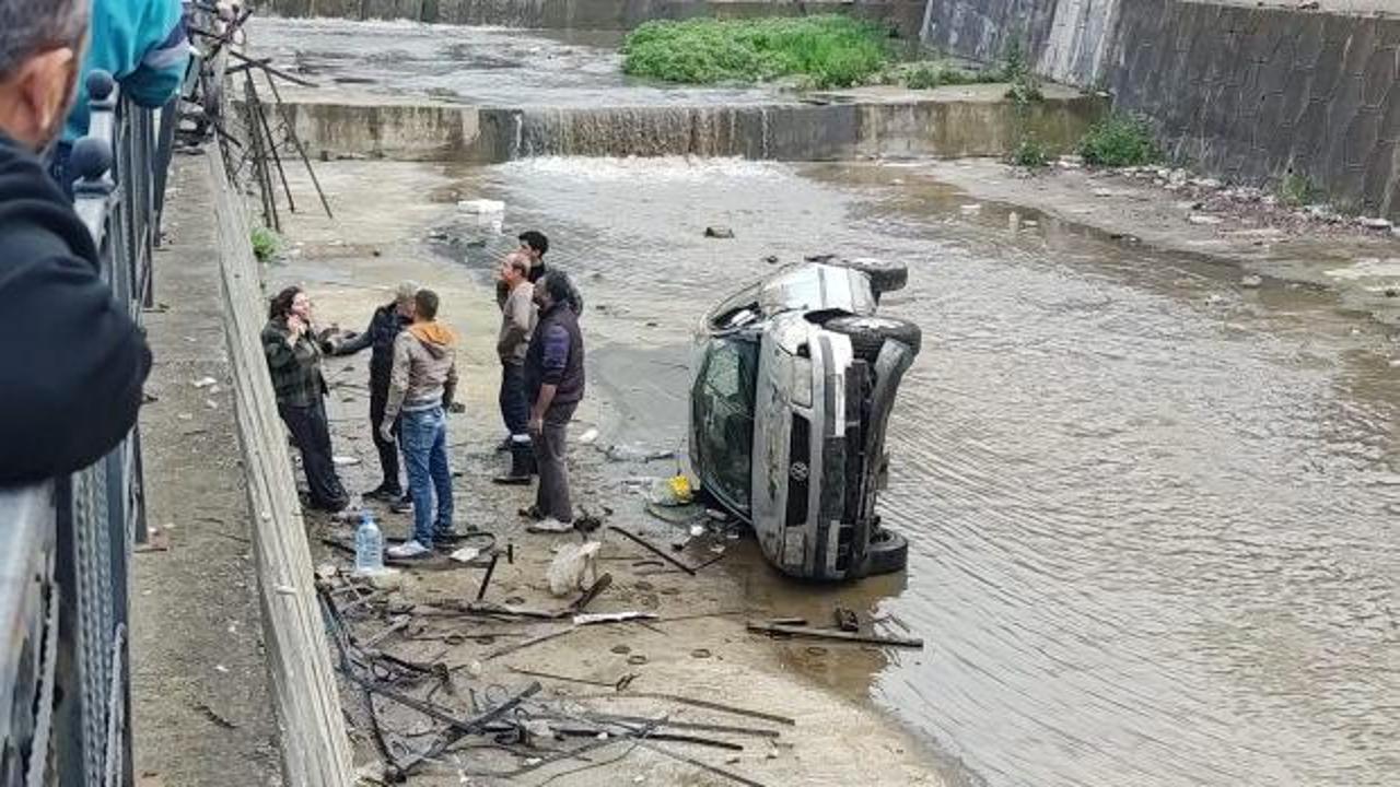 Hatay'ın İskenderun ilçesi Muradiye Mahallesi Sanayi Sitesi yakınlarında sürücüsünün kontrolünü yitirdiği otomobil, demir korkulukları yıkıp feyezan kanalına uçtu. Kazayı gören çevredekiler ve esnaf, durumu 112 Acil Çağrı Merkezi’ne bildirip, kanala merdiven indirerek yardıma koştu.