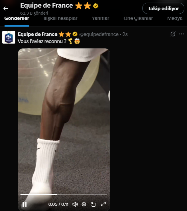 Gelen eleştirilerin ardından Fransa Milli Takımı resmi hesabından dikkat çeken bir paylaşım yapıldı. Kanté’nin bacak kaslarına ait görüntülerin yer aldığı paylaşımda “Onu tanıdınız mı?” notu düşüldü.