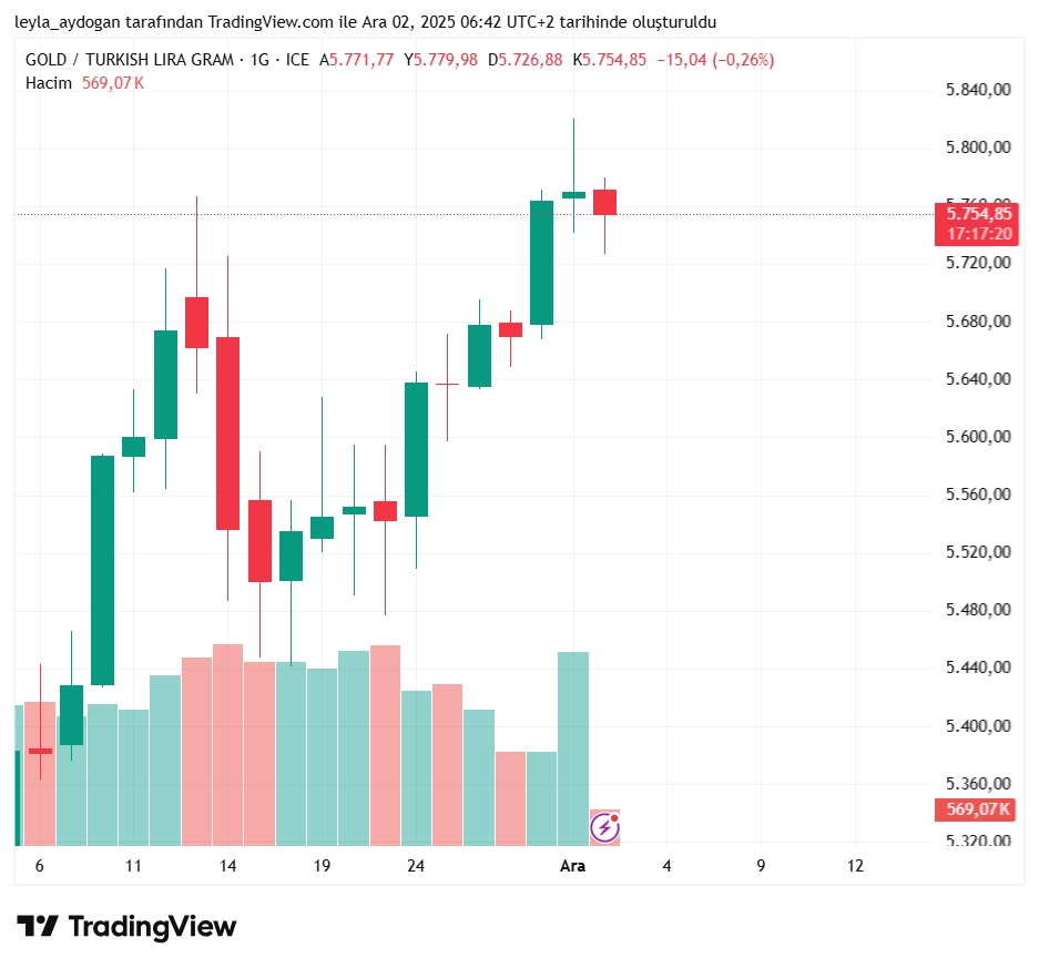 Ons altın 4 bin 217 dolarda bulunurken gram altın 5 bin 754 TL'de hareketleniyor. Dün gerçekleştirilen işlemlerde gram altın 5.821 TL’ye, ons altın ise 4.264 dolara kadar yükselmişti.