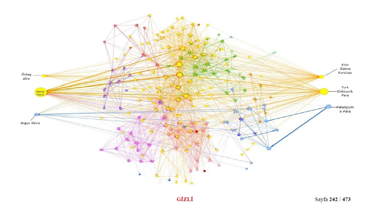 Mercek altına alınan 240 firmanın banka hesaplarına ilişkin elde edilen grafik Masak raporuna girdi.‘5.6 MİLYARLIK PARA TRANSFERİ’ İDDİASI4 ayrı operasyonu kapsayan soruşturma dosyasında toplam şüpheli sayısı 305 olarak kayıtlara girdi. Soruşturma dosyasına göre, paravan olarak kurdurulan yüzlerce firmadan 2 döviz firmasına milyarlarca liralık para akışı oldu. İddiaya göre, Özbey Ailesine ait Venüs Döviz’e 5.6 milyar lira aktarıldı. Angun Döviz AŞ’ye ise 1 milyar lira para aktarıldığı öne sürülüyor. Ayrı bir muhasebe mekanizmasının devreye alındığını öne süren savcılık, elde edilen paralarını 6-7 ayrı bankaya aktarılarak, izin kaybettirilmeye çalışıldığı görüşünde.