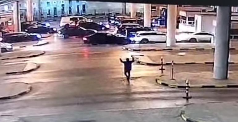 Güvenlik kamerasına yansıyan kaza sonrası gözaltına alınan otomobil sürücüsünün, fren yerine yanlışlıkla gaza bastığını söylediği öğrenildi.