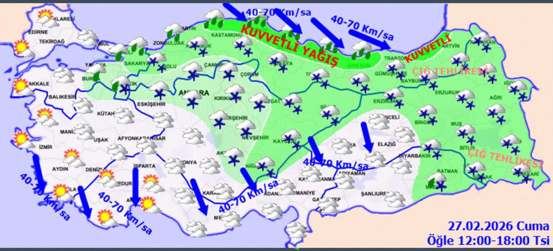 Özellikle Doğu Karadeniz’in iç kesimleri ile Doğu Anadolu’nun eğimli ve yüksek alanlarında ise çığ tehlikesinin olduğu belirtildi. Yağışların hafta sonu boyunca iç ve doğu bölgelerde etkisini sürdürmesi, yeni haftada ise sıcaklıkların batıdan başlayarak yükselmesi bekleniyor.