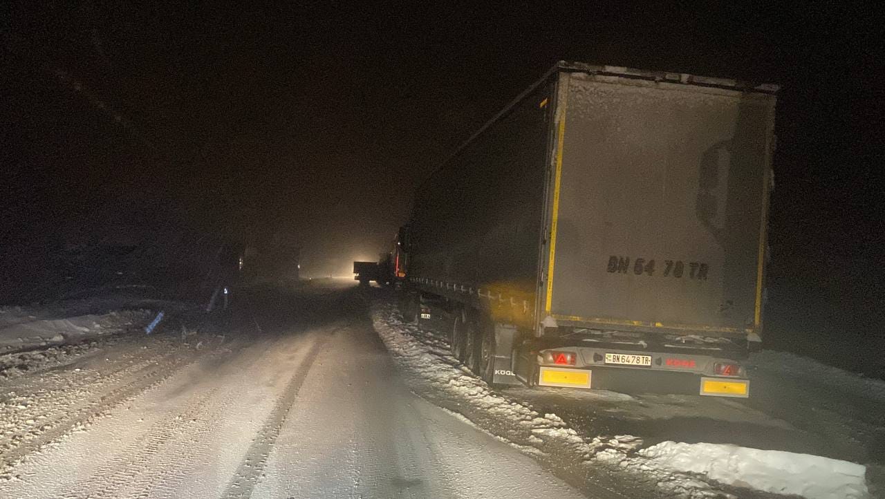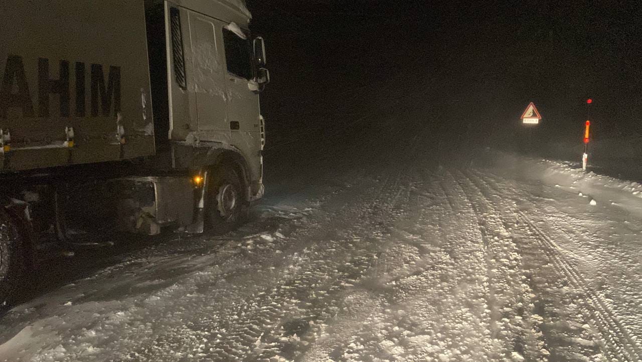 Doğubayazıt ile Çaldıran ilçelerini birbirine bağlayan Tendürek geçidinin 2 bin 400 rakımlı Somkaya köyü mevkisinde olumsuz hava koşulları nedeniyle çok sayıda TIR yolda kaldı.