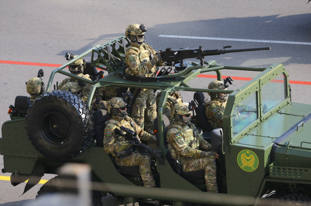 TÜRK VE AZERBAYCAN ASKERİ GEÇİT TÖRENİNDE BİRLİKTE YÜRÜDÜTürkiye'nin 2. Karabağ Savaşı boyunca verdiği desteğin sembolü olarak Cumhurbaşkanlığı Muhafız Alayı Tören Birliği Komando Taburu da geçitte yer aldı. İki ülke askerlerinin adımlarındaki uyum, izleyenler tarafından uzun süre alkışlandı. 2. Karabağ Savaşı gazileri, büyük coşkuyla meydandan geçti. Pakistan Silahlı Kuvvetlerine ait birlikler de törende yer aldı.