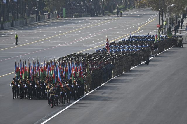 Azerbaycan ordusunun 2. Karabağ Savaşı'nda elde ettiği tarihi zaferin 5. yıl dönümü, Bakü'de geniş kapsamlı askeri geçit töreniyle kutlandı.