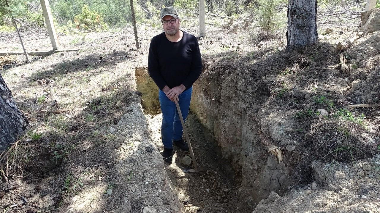 Karabük'ün Safranbolu ilçesinde yaşayan 2 çocuk babası Miraç Erol (54), kendi mezarını kazdı. Erol, "Dokuz canımı da son arı sokmasıyla vermiş oldum." diyerek yaşadığı süreci anlattı.