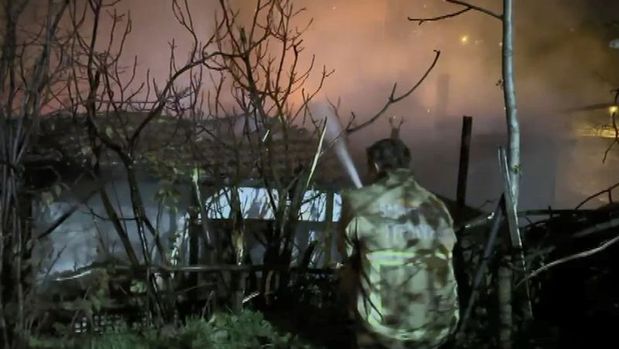 Henüz bilinmeyen nedenle çıkan yangında alevler kısa sürede büyüyüp tüm ahşap yapıyı sardı.