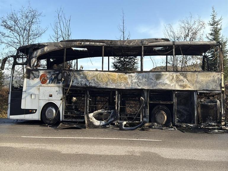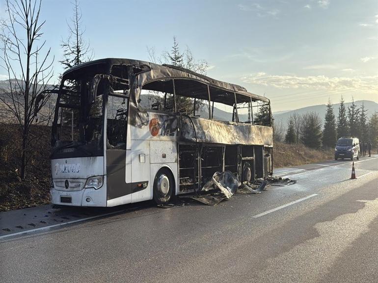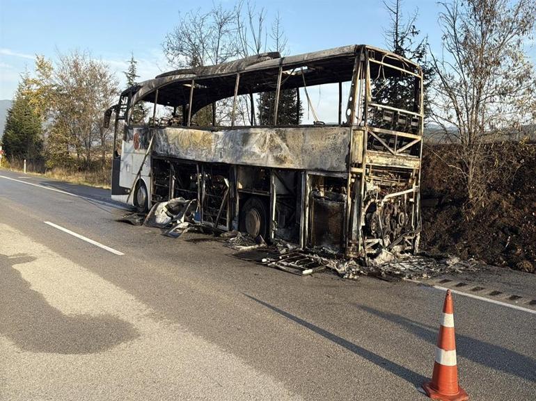Karabük te seyir halindeki yolcu otobüsü yandı