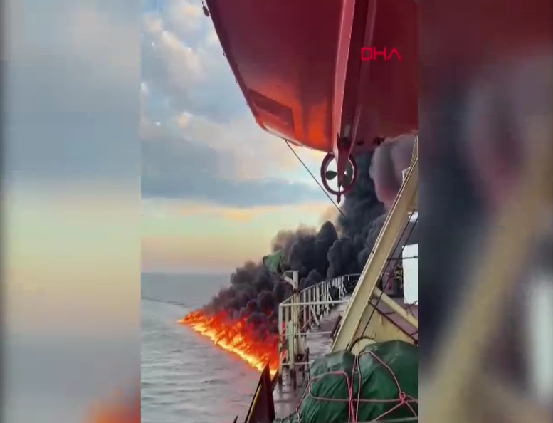 Görüntülerde, saldırı sonrası gemide yangın çıktığı ve yoğun kara dumanın gökyüzünü kapladığı görüldü.