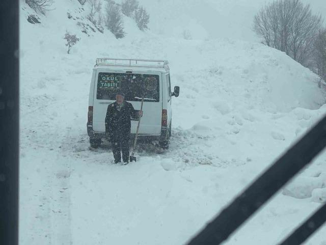 Karda mahsur kalan öğrencilerin minibüsü kurtarıldı