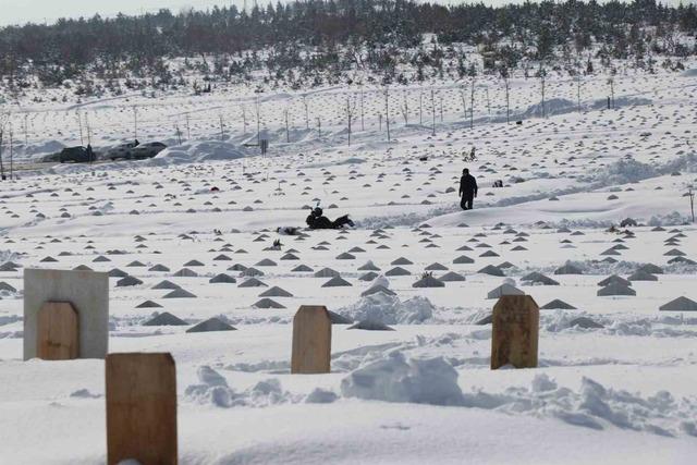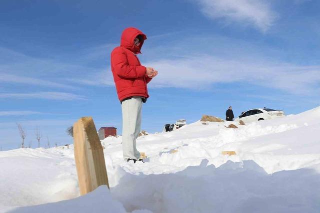 Karla kaplanan mezarda yakınlarının kabirlerini bulmakta zorlandılar