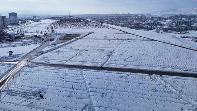Sivas’ta günlerdir aralıklarla etkisini sürdüren yoğun kar yağışı hayatı olumsuz etkilemeye devam ediyor. Kent genelinde birçok nokta beyaz örtüyle kaplanırken, şehrin en büyük mezarlıklarından biri olan Yukarı Tekke Mezarlığı da kar altında kaldı. Yaklaşık 100 bin mezarın bulunduğu mezarlık alanı tamamen beyaza bürünürken, mezar taşları da kara gömüldü. Bazı vatandaşlar mezar taşları karlı örtüldüğü için yakınlarının mezarlarını bulmakta zorlandı.