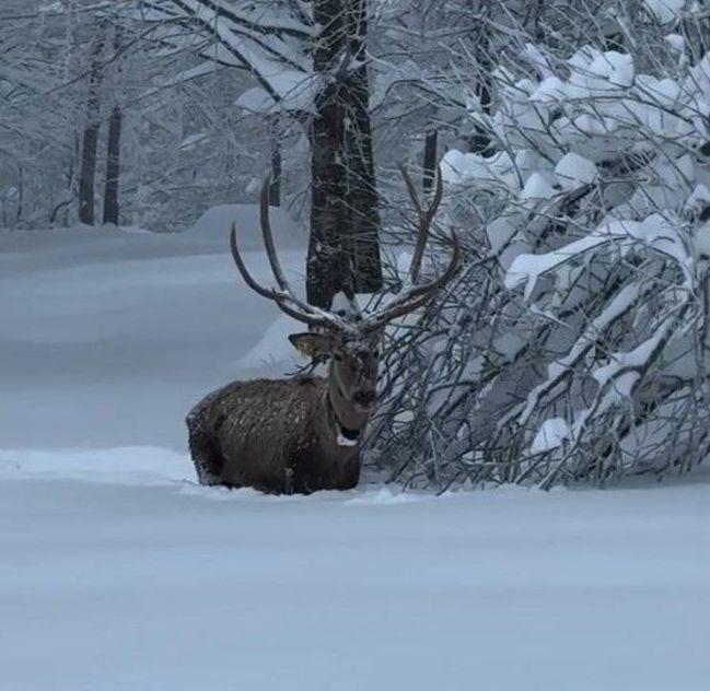Karla kaplı Kuzuyayla Tabiat Parkı nda kızılgeyik kamerada