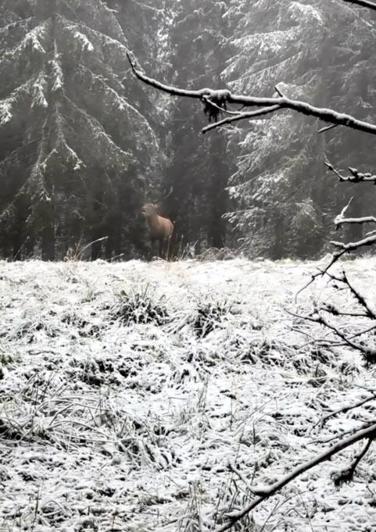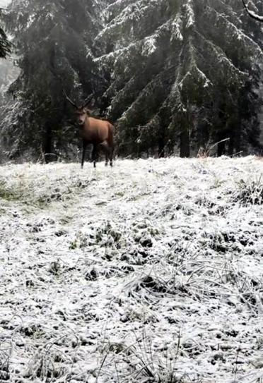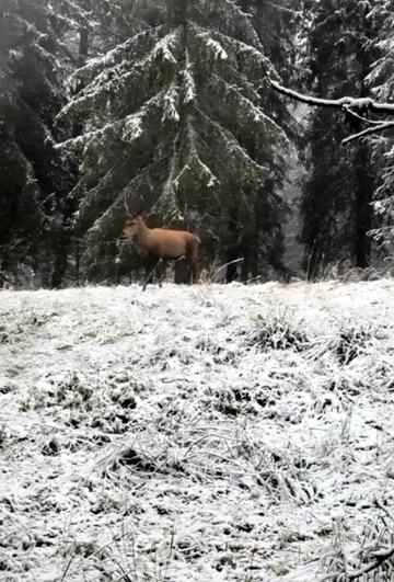 Yüzde 65'i ormanlarla kaplı Bolu'da doğa gezisine çıkan Sefa Eskioğlu, karlar içinde ilerleyen bir kızılgeyiği fark etti. Eskioğlu, o anları cep telefonuyla kaydetti. Karla kaplı ağaçların arasında dolaşan kızılgeyik, daha sonra gözden kayboldu.