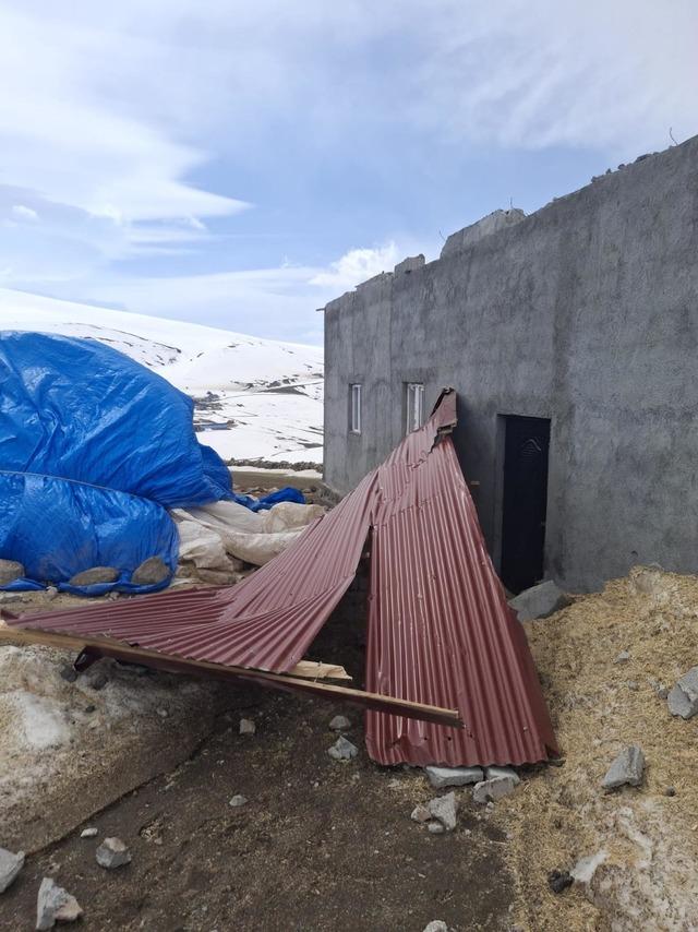 Kars ta kuvvetli rüzgar çatıları uçurdu