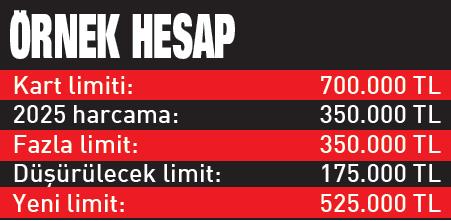 400 bin liranın üzerindeki kart limitlerinde son bir yıllık harcamalara bakılacak. Bu harcamalar limitin altındaysa kalan kısmın yüzde 50'si düşürülecek.