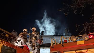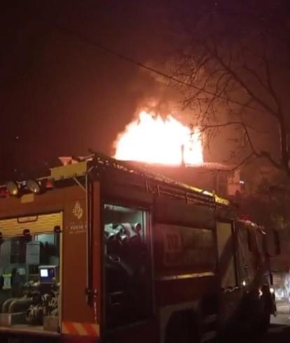 Karabük te 2 katlı evin çatısı alev alev yandı