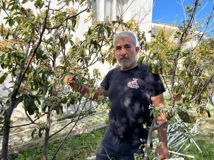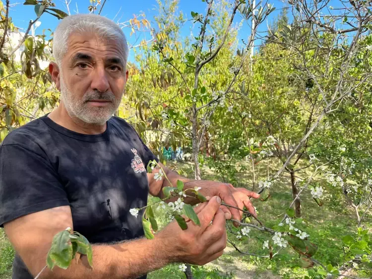 Hava sıcaklığının mevsim normallerinin üzerinde devam etmesi nedeniyle meyve ağaçlarının erken çiçek açtığını belirten bahçe sahibi Mehmet Yüksel, "Yaşım 50, bugüne kadar böyle bir olaya tanık olmadım.