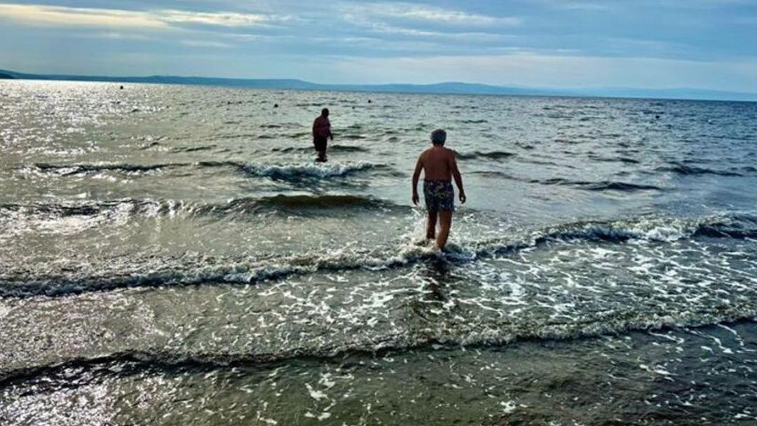 Balıkesir'in Erdek ilçesinde hava sıcaklıklarının mevsim normallerinin üzerinde seyretmesini fırsat bilenler, Çuğra Sahili'nde denize girdi. İlçede hava sıcaklığı 25, deniz suyu sıcaklığı 17 derece olarak ölçüldü.