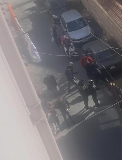 Bunun üzerine motokurye "Yarım saat sonra görürsünüz" diyerek olay yerinden ayrıldı.Bir süre sonra arkadaşlarıyla olay yerine geri gelen motokuryeyle araç sahibi arasında yeniden tartışma çıktı. Kavgaya dönüşen olayda taraflar birbirine girdi. Yumruk ve tekmelerin atıldığı kavgayı çevredeki vatandaşlar ayırdı. Yaşananlar cep telefonu kamerasına yansıdı. Kavganın ardından taraflar olay yerinden ayrıldı.