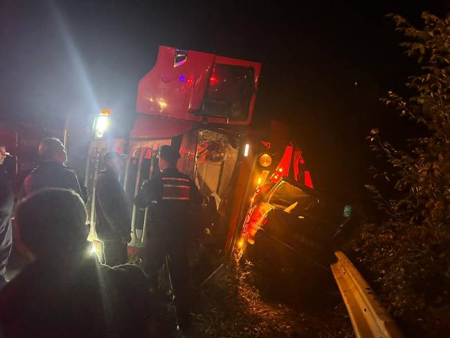 Devrilen TIR'da sıkışan sürücü 2 saatlik çalışmayla kurtarıldı