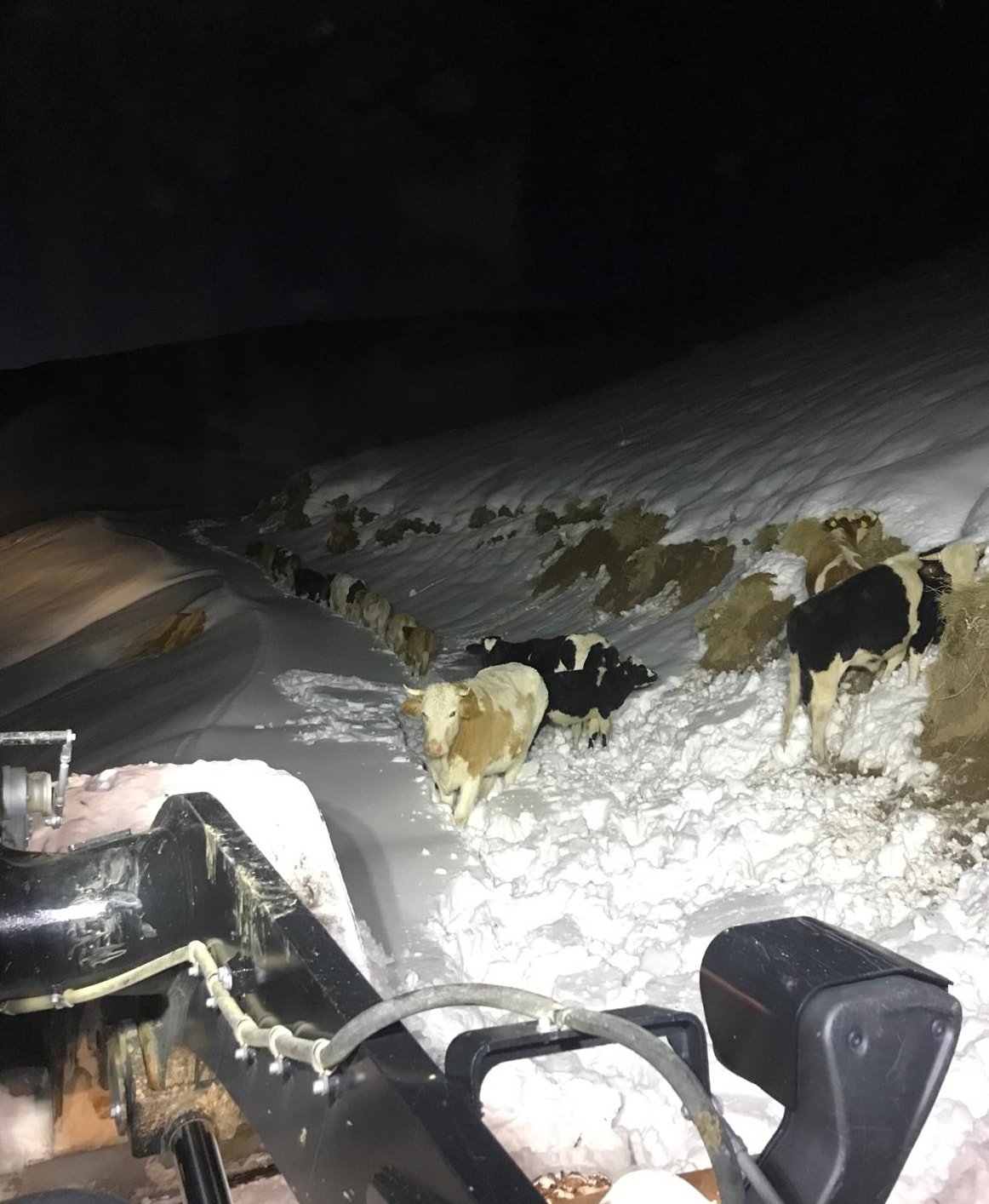Bazı noktalarda yoğun kar nedeniyle yürüyerek ilerleyebilen ekipler, Bılmizit Yaylası'nda 8 hayvanı buldu.