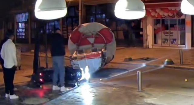 Üçüncü kaza ise Düzce şehir merkezinde meydana geldi. Sürücüsü ve plakası alınamayan motosiklet Şerefiye Mahallesi Süleyman Kuyumcu Caddesi üzerinde seyir halindeyken simit tezgahına çarptı. Maddi hasar ile atlatılan kaza çevredeki güvenlik kamerasına anbean yansıdı.
