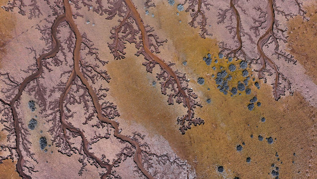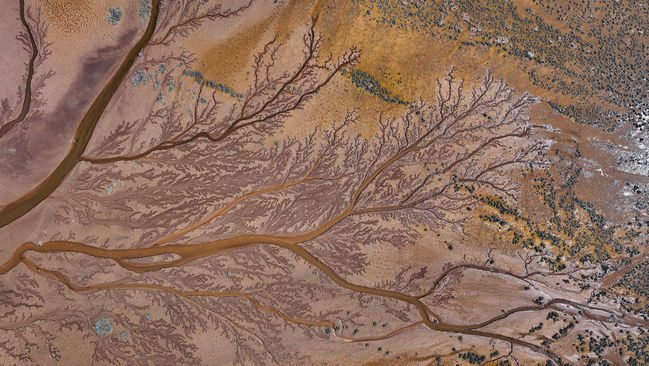 Çevreden akan irili ufaklı suların derelerle birleştiği ve göle döküldüğü alanlarda oluşan izler, dronla çekilen görüntülerde ağaç dallarını andırıyor.