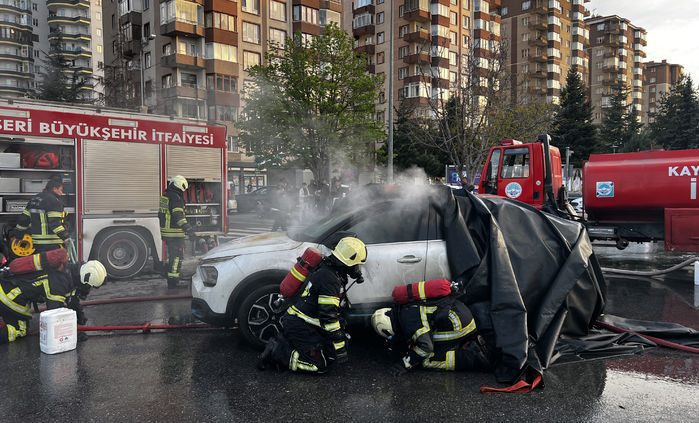 Kayseri haberleri: Alev alan elektrikli araca yangın battaniyesiyle müdahale! Son dakika haberleri