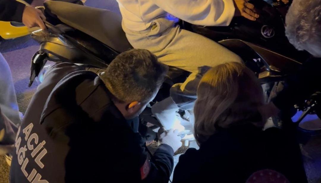 Kaza sonrası genç sürücünün ayağı motosikletin pedal demirine sıkıştı