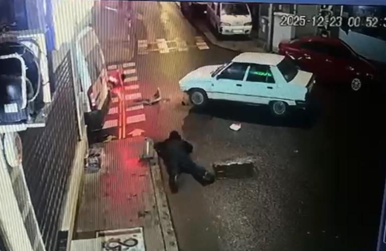 Kazadan sonra yerde yatan sürücüyü kontrol edip olay yerinden kaçtı; o anlar kamerada