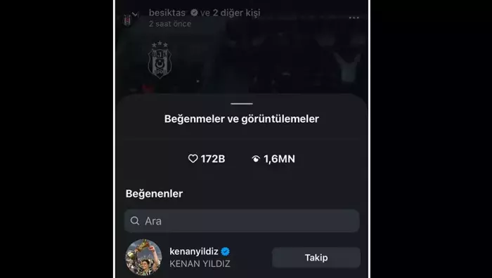 Kenan Yıldız'ın beğenisi Beşiktaş'ı tuttuğu şeklinde yorumlandı.