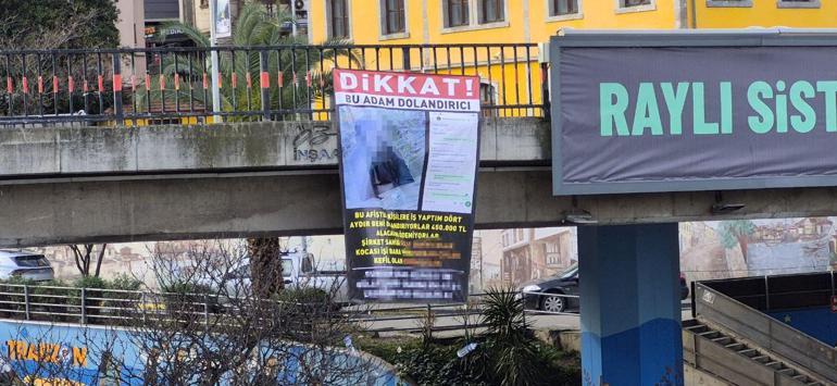 Kendisini dolandırdığını öne sürdüğü kişileri afişle teşhir etti