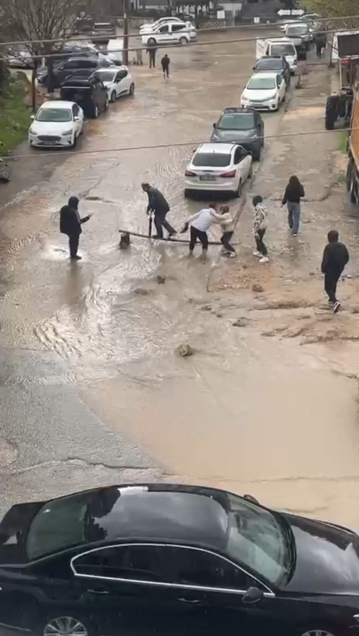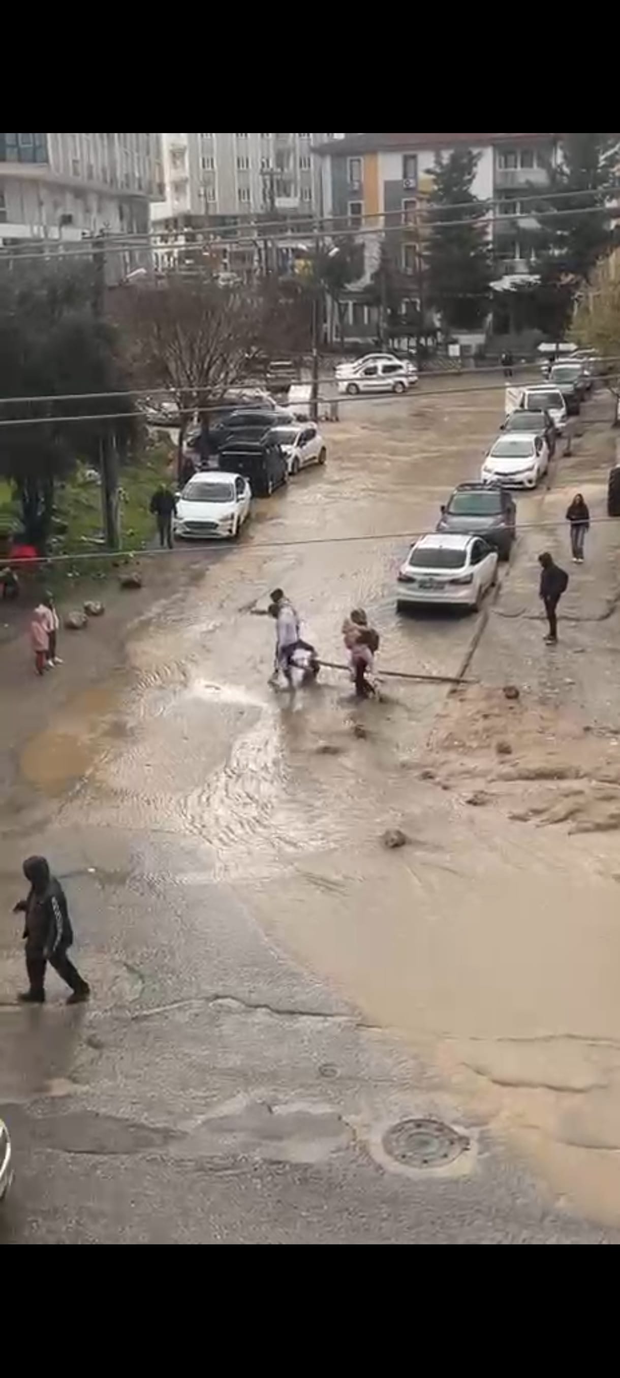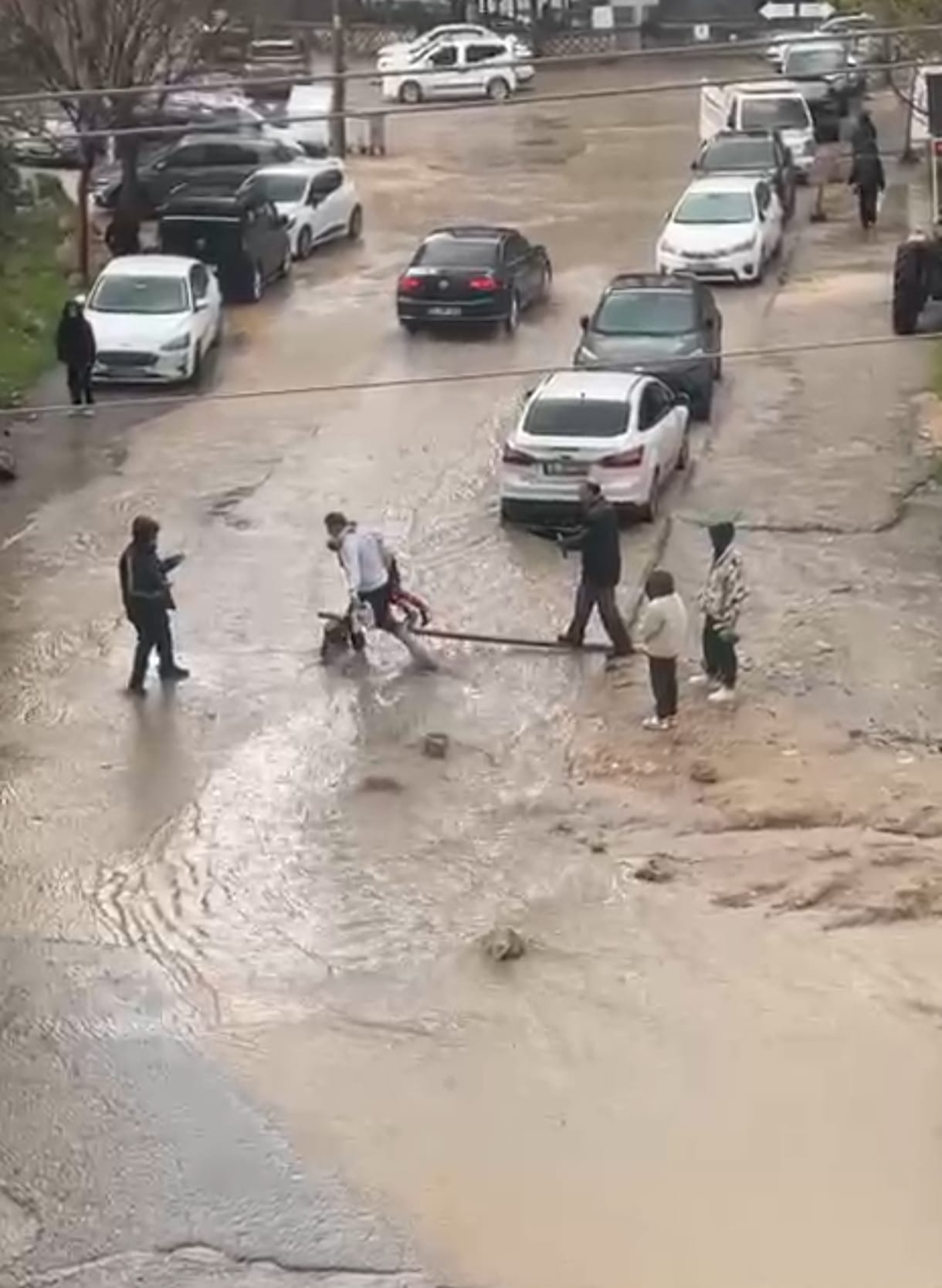 13 Mart Mahallesi'nde ise bazı yayalar, karşıya geçmek için yola tahta koyarak üzerinden geçti. O anlar, cep telefonuyla kaydedildi.