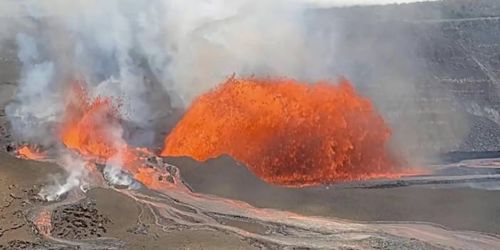 Kilauea Yanardağı’nda cehennem görüntüleri: 450 metre püskürttüğü lavlar sel oldu aktı