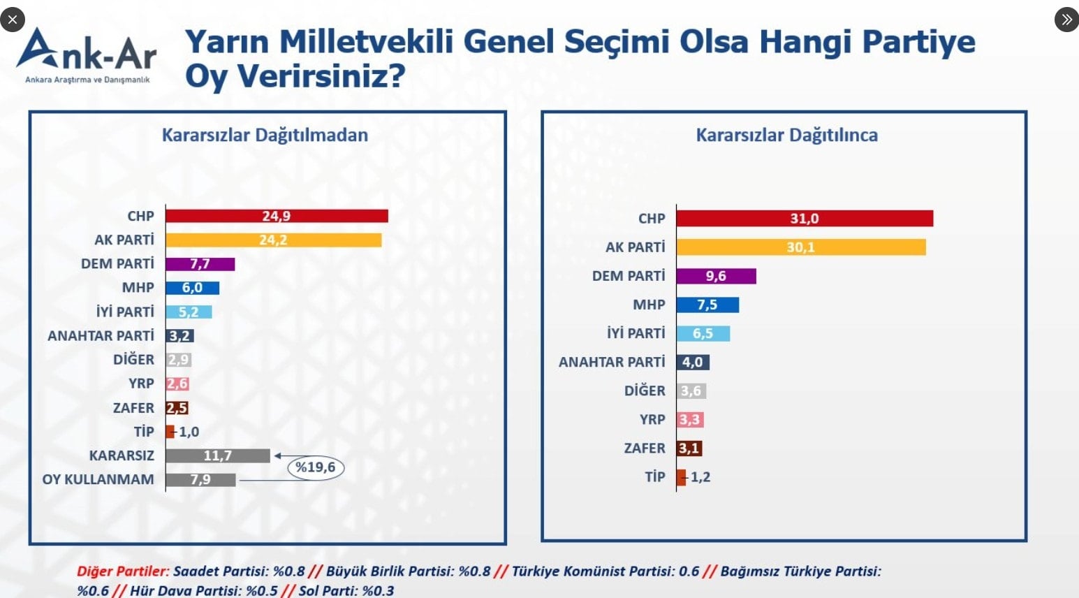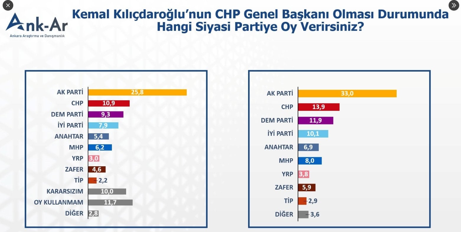 Anket sonuçları, Kemal Kılıçdaroğlu’nun liderliğinde CHP’nin oylarının eridiğini ve seçmenlerin alternatif partilere yöneldiğini gösteriyor. Uzmanlar, bu verilerin partiler arası dengelerin değişebileceğine işaret ettiğini belirtiyor.
