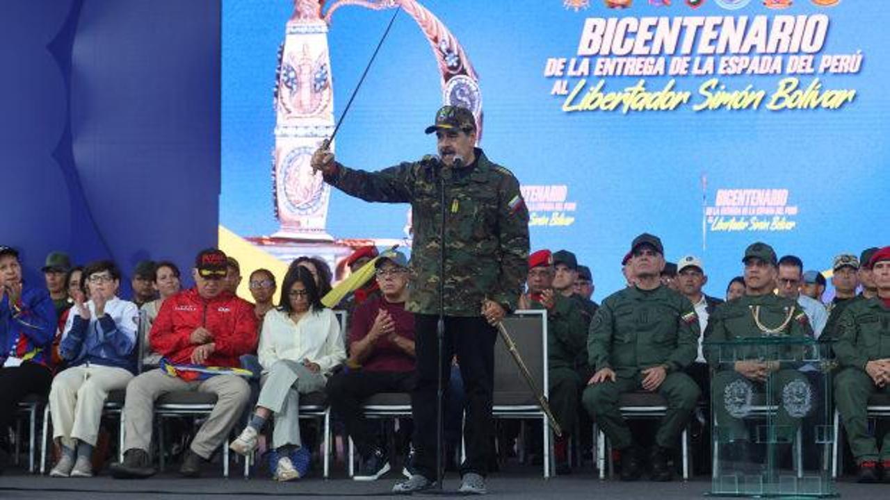 Venezuela Devlet Başkanı Nicolas Maduro, ABD ile yaşanan krize ilişkin konuşmasında Venezuelalı asker ve devlet adamı Simon Bolivar'ın kılıcını kuşanarak, "Ulusumuzun muhteşem bir çaba ve fedakarlık istediği bir dönemde sivil, siyasetçi, polis ya da asker, hiç kimsenin bir bahanesi olamaz. Gerekirse ülkemiz uğruna canımızı feda ederiz" dedi.